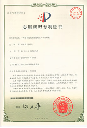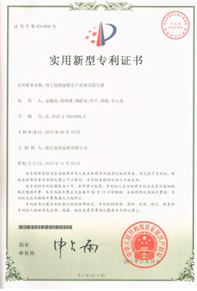 • 益紙淀粉實用新型專利證書