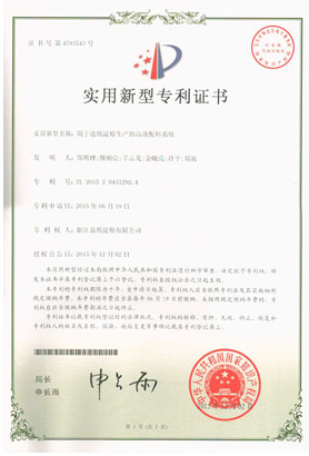• 配料系統實用新型專利證書